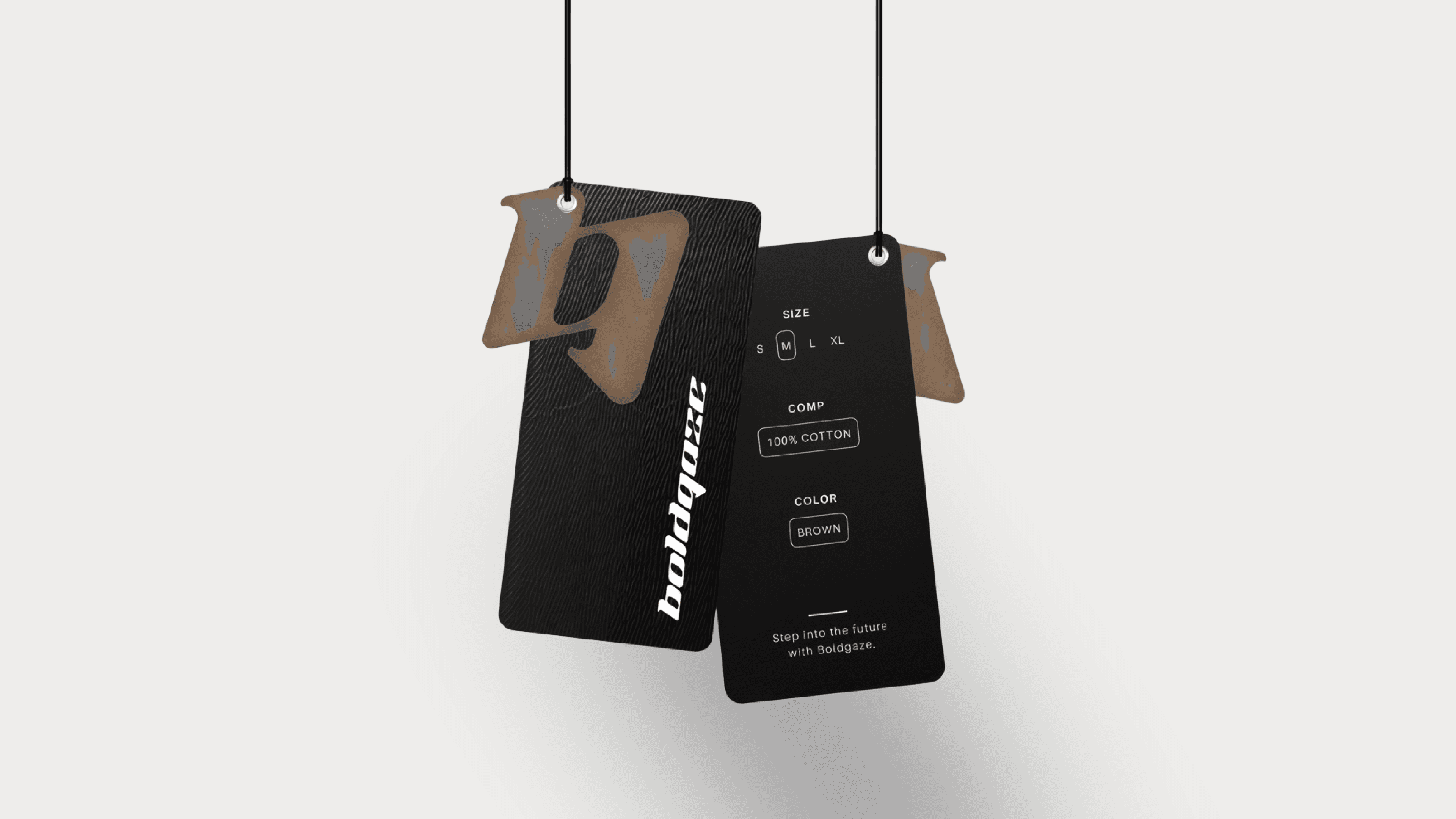Die Hangtags wurden bewusst minimalistisch gehalten und kombinieren dunkle, edle Flächen mit markanten Details, um den urbanen Charakter der Marke zu unterstreichen. Verpackung und Label-Design greifen diesen Look auf und schaffen ein konsistentes Erscheinungsbild, das in jeder Berührung mit der Marke spürbar ist.